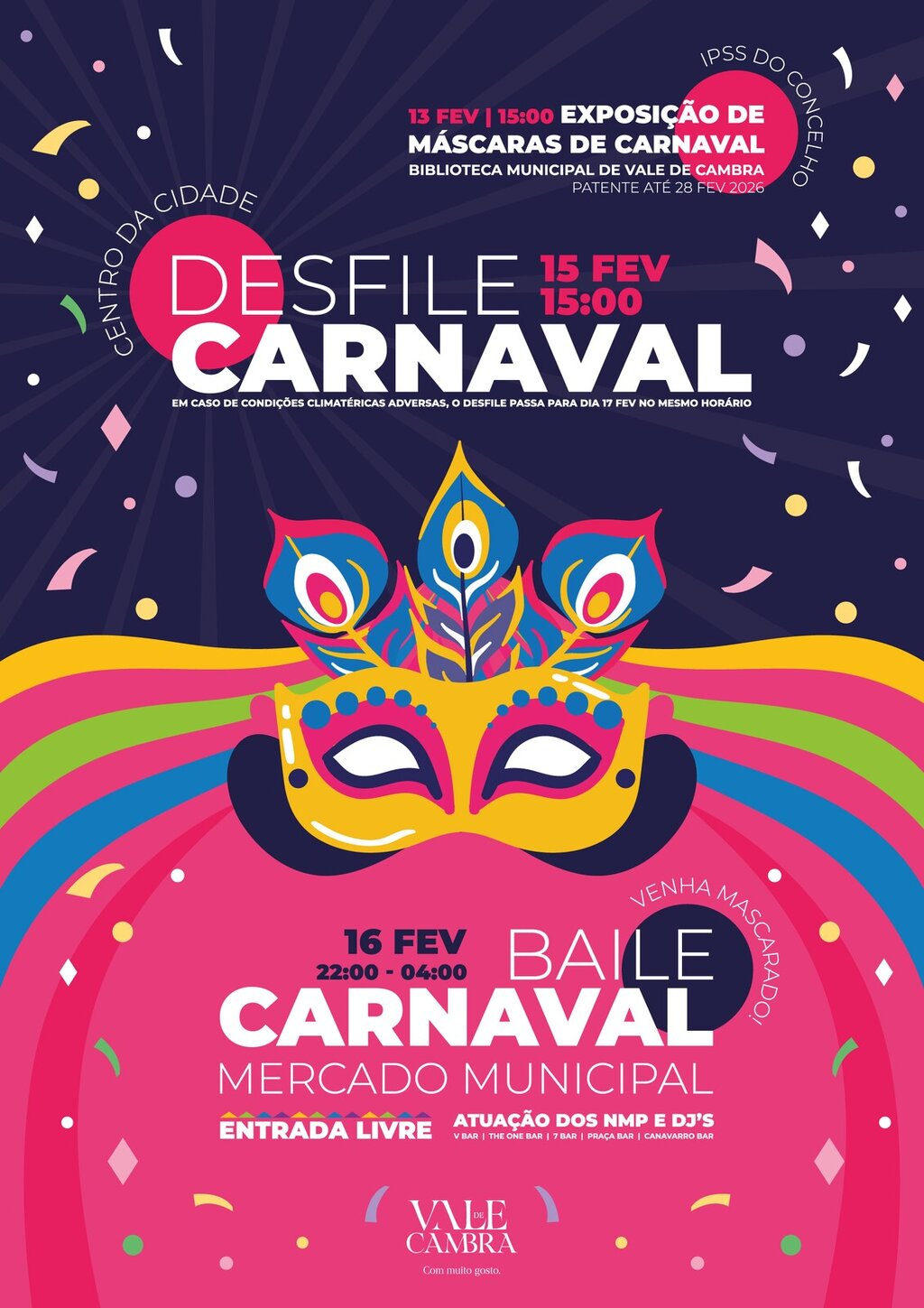 Com este programa, o Município de Vale de Cambra reafirma a aposta na valorização das tradições, no envolvimento das instituições locais e na dinamização cultural do concelho, convidando toda a população a participar e a viver o Carnaval em Vale de Cambra.